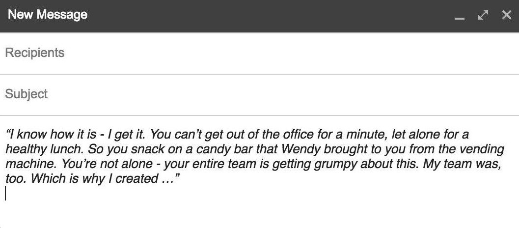 For your email, you’re going to try a different approach. Instead of spending all your time selling, pitching, and persuading, be personable instead. Focus on communicating and being impactful by being human, nice — and most importantly of all, funny.