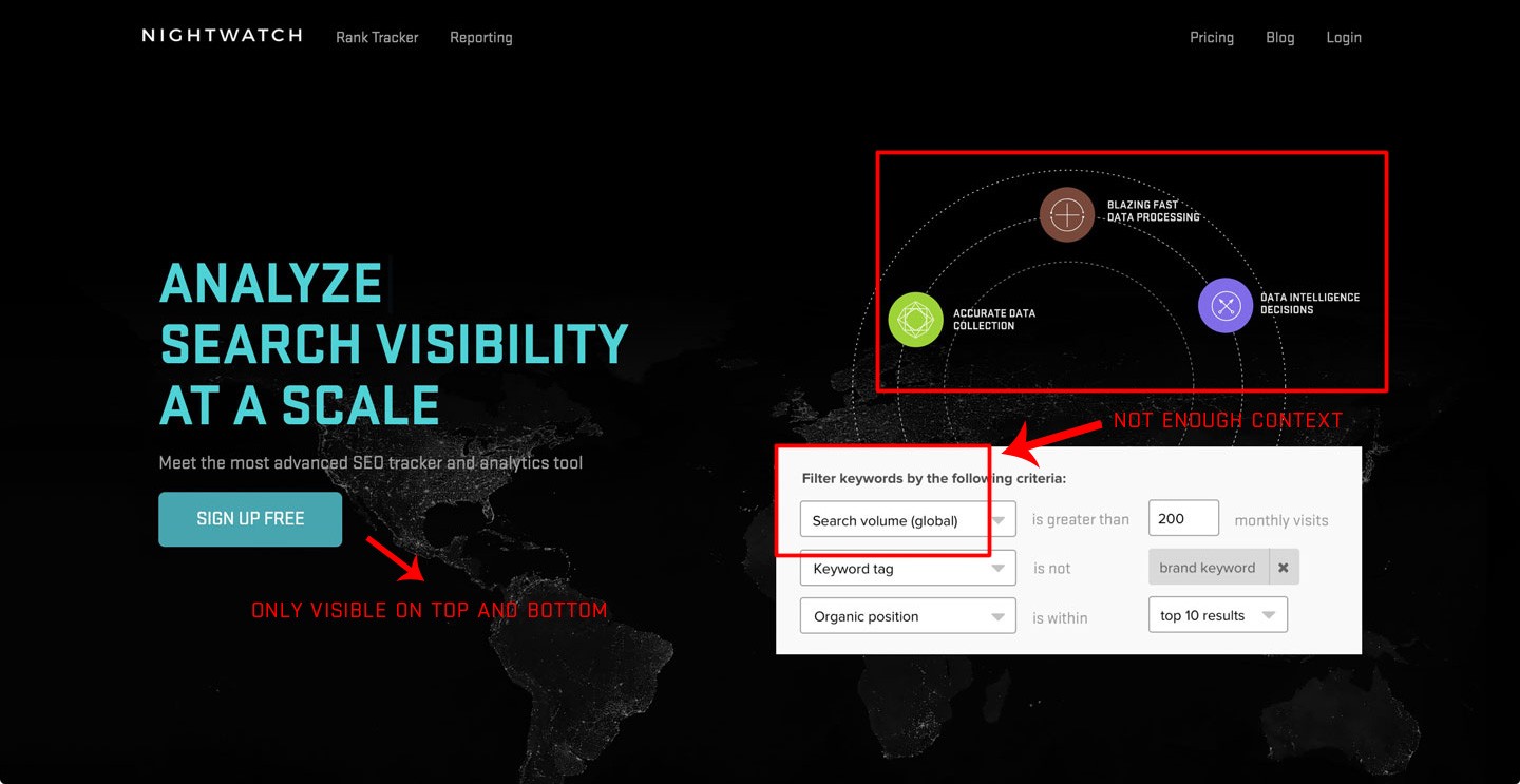 Comparing the website with our other product RankTrackr — which is geared towards different, modest needs — we got the feeling that we were missing one main thing, one thing that is holding back our conversions…