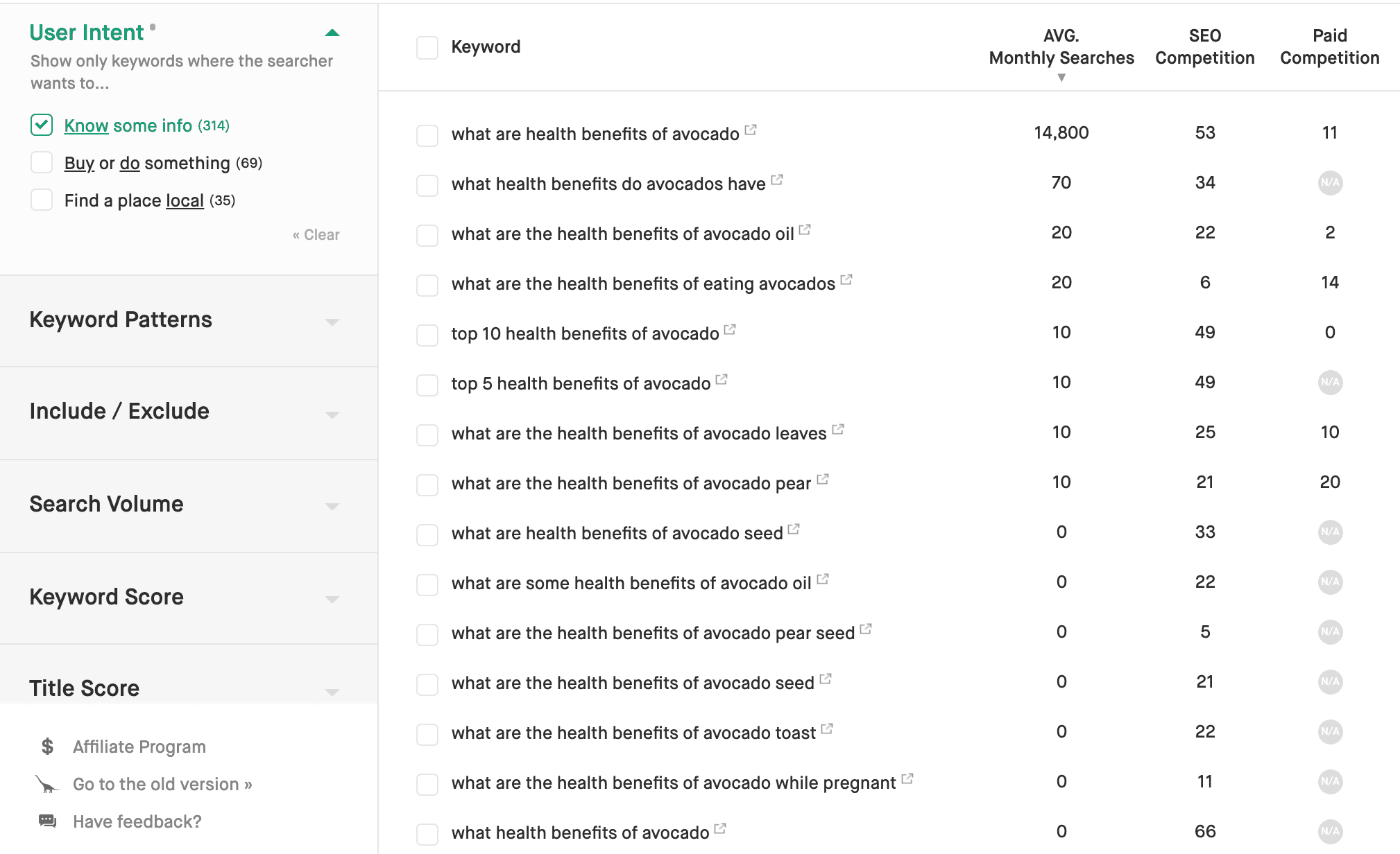 In so doing, you’re met with a bunch of long-tail keyword suggestions that you can then integrate into your content. Ubersuggest also filters keywords so that you’re able to find ones that are more usable.
