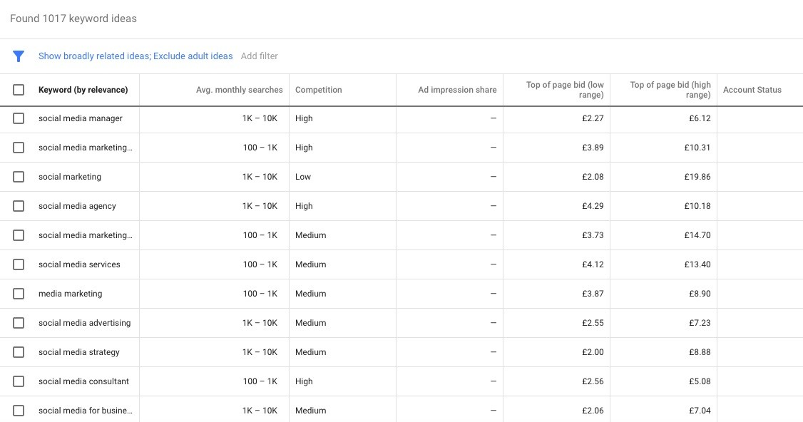 Make sure to eliminate any terms you absolutely don’t want to use in a keyword. Doing so will ensure that Google doesn’t suggest irrelevant keywords.