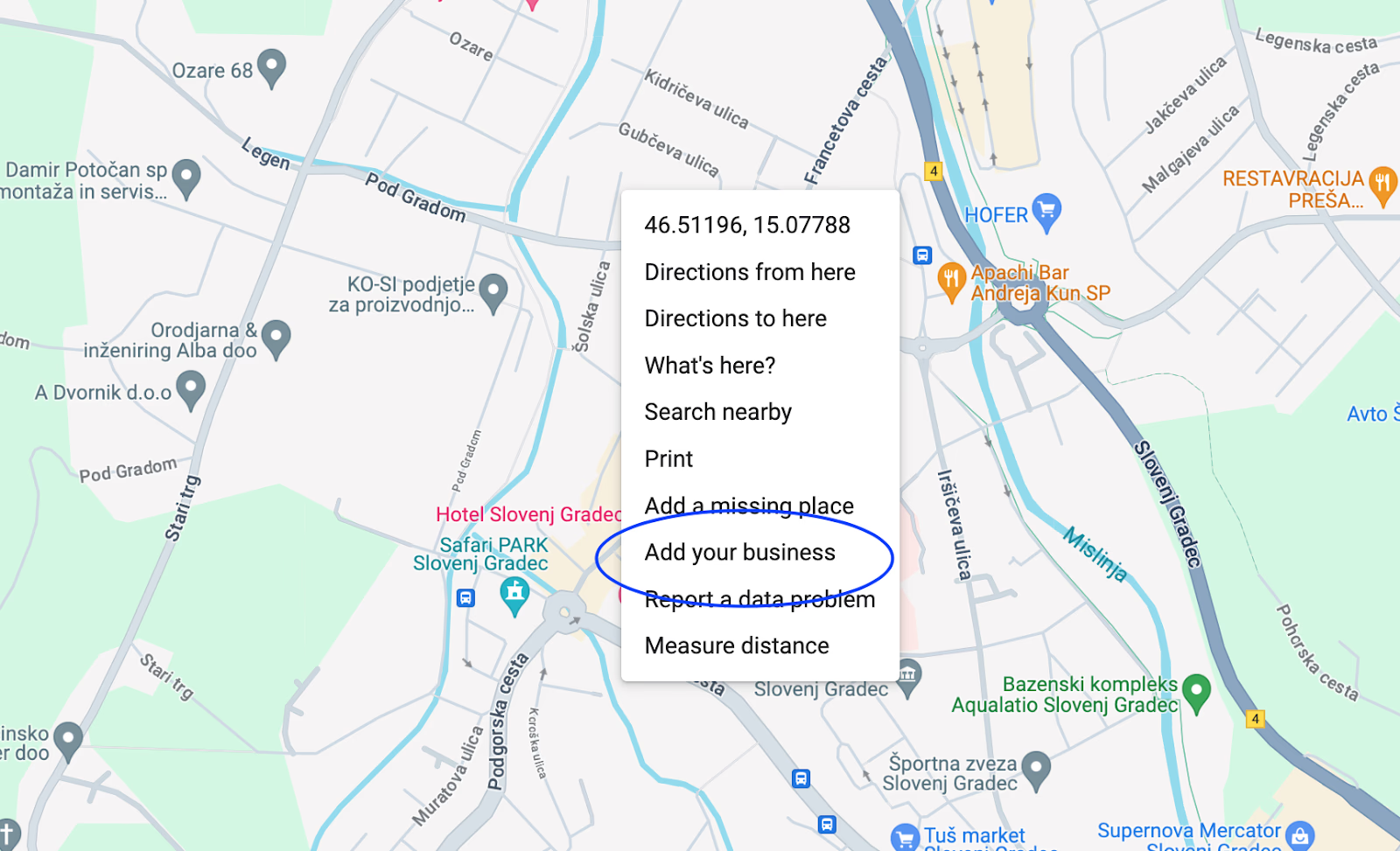 - Select the location on the map and right-click. A pop-up will appear, showing the Add your business tab;
