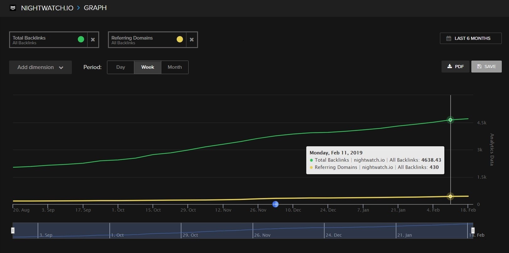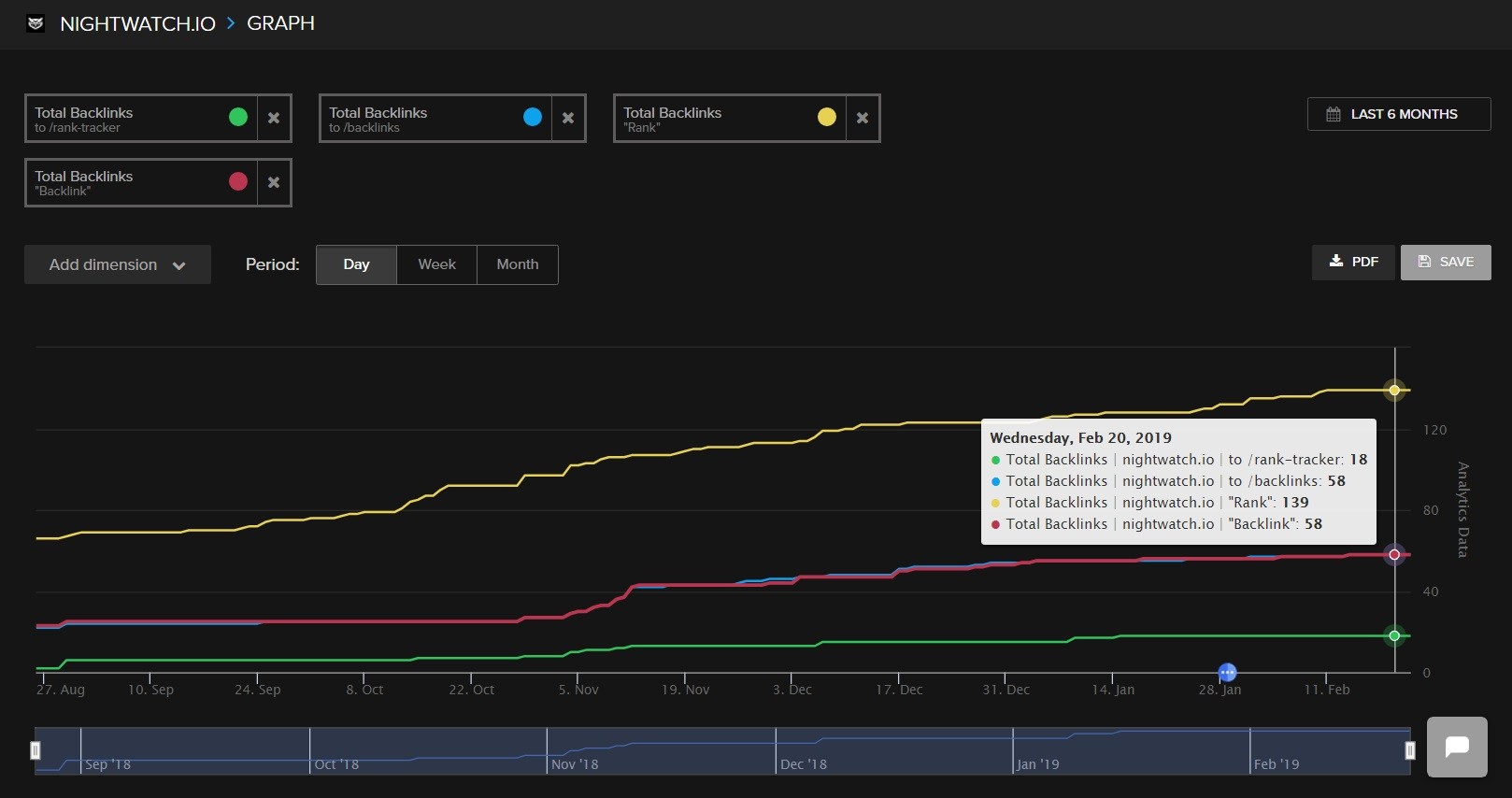 How to: On your Nightwatch graph, select “All backlinks” > “Total backlinks” under Backlinks.