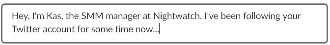 But it also built a strong connection and trust between those chosen accounts and us. At that point, whenever our article was out, they were more than happy to give back and share it with their audience. In our message, we highlighted the obvious benefit of such collaborations for both sides.